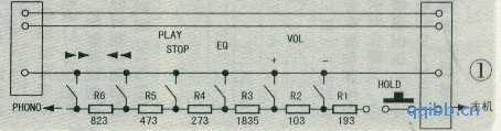 例2:线控器能传递声音.但线控器上的键均失效、 此机有机上控制键,它还配置线控器。这个线控器其 实是一个极其简单的阶梯电压控制电路。见图1,打开线 控器,发现“HOLD”(同步开关)接触不良造成断路。使电 压中断,造成所有键失效,换新后故障排除。[!--empirenews.page--]
