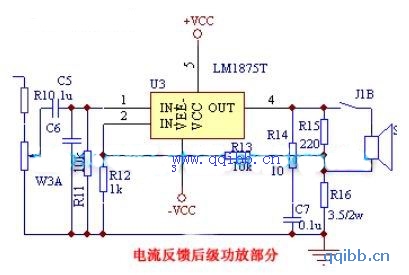 在以往电子报刊中常介绍给功放集成电路取消负反馈电容,再加上一个由运算放大器构成的直流伺服电路,使其变成一个纯直流功放电路,事实对LM1875,还有LM3886等,根本不需多此一举,直接取消该电容即可,用数字万用表实际测量输出端,发现它的零点偏移很少,只有几毫伏左右,本人用这样的电路多年还没有烧坏集成块和扬声器的事件发生,况且该集成电路具有过热过流短路保护功能,该电路中取消了负反馈电路中下面的负反馈电容,变成了纯直流放大电路,大大地拓宽了频率响应,事实证明,只要前级音频输入电容选好,一般用CBB 1U,或者用别的发烧品牌如WIMA,等,后级电位就很稳定,不能用一般的电解电容,因为那样有可能有小电流通过,通过放大后造成后级的不稳定,你可以通过对比试听出取消前后的音质绝然不同的效果,特别是高频和低音的拓宽,该电路取消了一般采用运放做伺服电路,使制作变得容易。