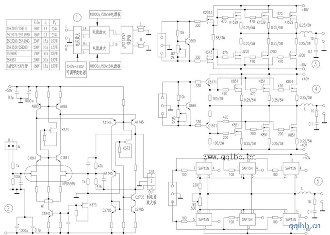 6.2SK2013/2SJ313推动8对大功率场效应管或三极管(图略),方便发烧友制作100W×2纯甲类。