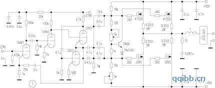 由于大功率场效应管售价较高,业余条件较难配对。为此,笔者采用了大功率场效应管推动大功率三极管。由于大功率三极管售价低,易配对,从而降低了制作难度。并且场效应管参与功率输出,推动级静态电流高达300~600mA,从推动级开始,功放便工作在甲类状态。