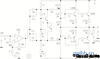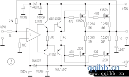 原理简图如图3所示,该线路采用了真正的电流负反馈电路,有别于报刊介绍的在负反馈环路中增加取样电阻一类电路。众所周知,电流反馈具有宽频、高速、低失真的特性,所以日本金嗓子名机中大量使用此技术。这里仅给出简化示意图,其末级采用三级电流放大,使用摩托罗拉专用驱动管MJE15030/MJE15031,驱动负载轻松自如。 [!--empirenews.page--]