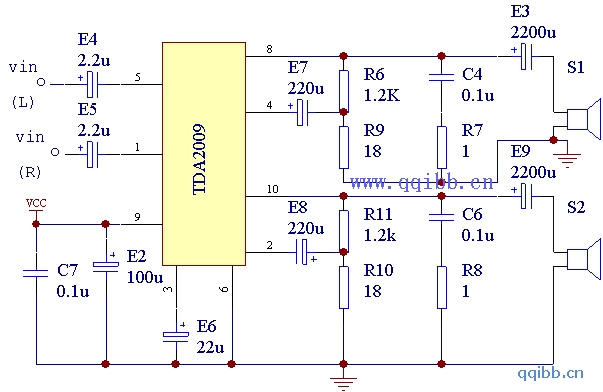 TDA2009是一种较为常见且价格实惠的高保真功放集成块。额定功率为2×10W。电源电压为8~28V。最大输出电流为3.5A。具有过热保护电路。(2×10W,THD=0.5%)