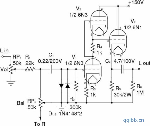 言归正传,上次介绍的功放采用了如下的电子管前级电路。