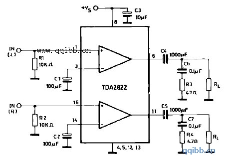 TDA2822可以当MP3,随身式的VCD(DVD),收音机,单放机的功率放大器。本文将TDA2822做成单声道的和立体声的电路图分别介绍如下: