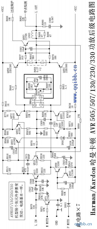 哈曼卡顿AVR505 507 130 230 330功放后级电路图