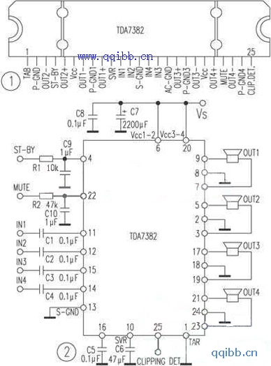 TDA7382是ST公司推出的一款新型甲乙类音频功率放大器,尤其适用于汽车收放机。