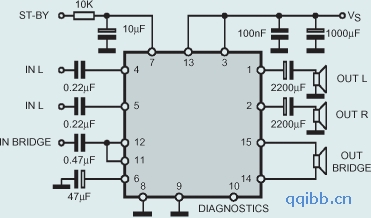 TDA7375为车用环绕立体声功率放大电路,广泛应用于汽车音响电路中,亦应用于多媒体音响设备中。它具有以下特点: