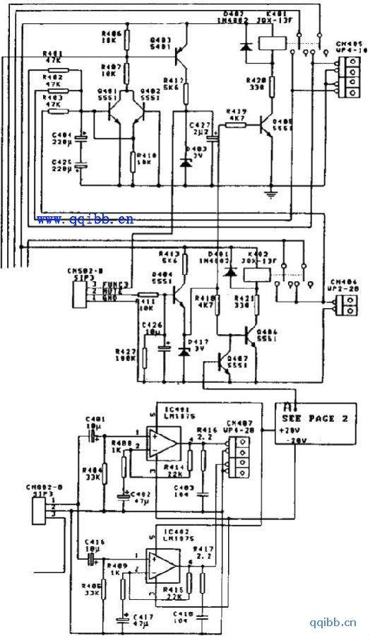 奇声AV-757DB放大器扬声器保护与环声道功放电路