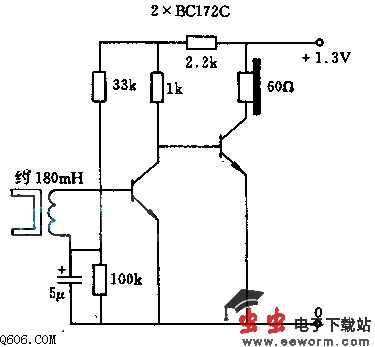 为了避免第二个耳机长时间接在电话机线路中,可接一个与电话网络相隔离的放大器,其输入信号可由电话机受话器的漏磁中获取。这里采用绕在U形铁芯上的线圈作拾音器,其数据如下: