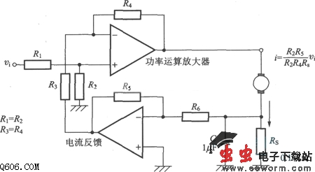 利用功率放大器作为差动放大器的电流控制方式电路图