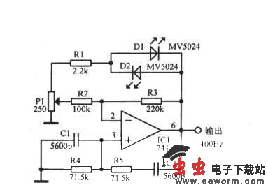 使用发光二极管和运算放大器的400Hz正弦波电路