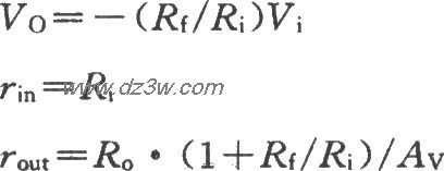 如图所示为μA709构成的基本反相放大电路。由图可知,反馈电阻Rf将输出端与输入端相连。由于该电路输出、输入电压反相,所以Rf引入了电压并联负反馈。由此使放大电路工作在运放传输特性的线性区,即输出电压与输入电压成正比关系。此外,在反相输入端串联电阻Ri,它就是运算放大电路的输入电阻。Ri增大可减轻信号源的负荷。基本关系: