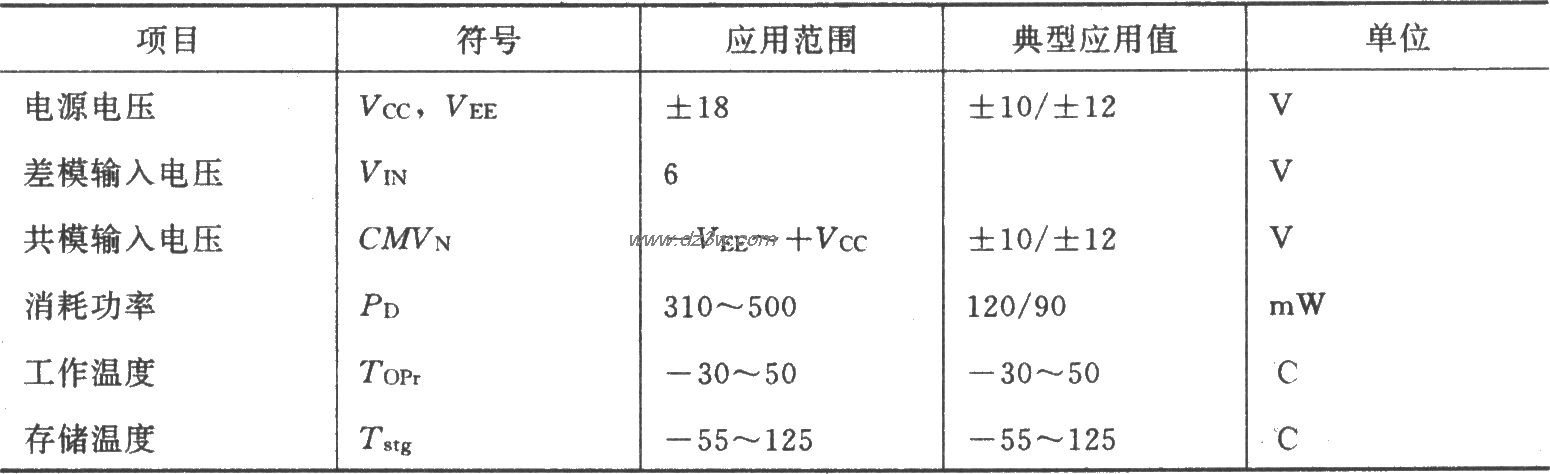式中:Ro——运算放大器(芯片)的输出电阻;.Av——运算放大器开环放大倍数。为了减小失调电压,应正确选择同相输入端的外接电阻Rc的值。通常应有Rc=Rf//Ri上式称为输入端平衡条件。μA709的主要性能:
