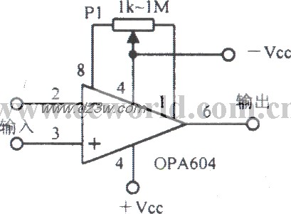 FET输入高保真运算放大电路OPA604 简化原理图: 调零接线图: