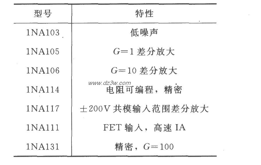 如图所示为由PGA103构成的具有可编程输出放大的仪表放大器。该电路采用两级级联的方式构成,第一级为INA系列仪表放大器,参见下表;第二级为PGA103。电路总的增益为两级增益之积,即G=G1G2。