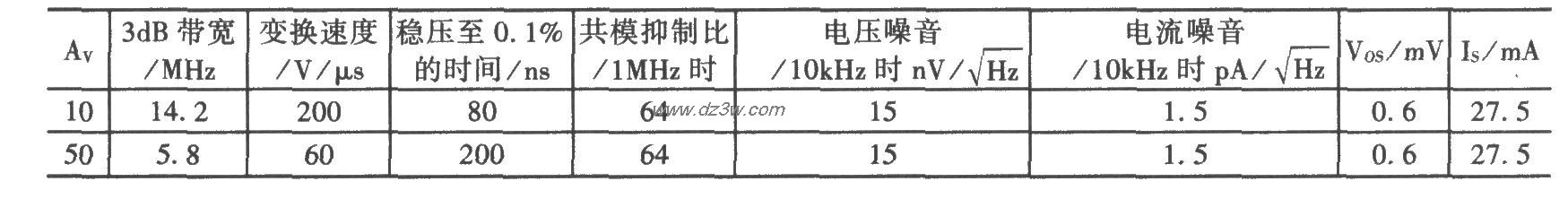 电路在±5V电源工作时的性能: