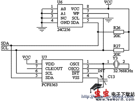 由EEPROM24C256和日历时钟芯片PCF8563组成。24C256是一款低电压、串行接口,容量为256K的存储器,用于存储测量的血压值。PCF8563是PHILIPS公司推出的一款工业级内含I2C总线的具有极低功耗的多功能时钟/日历芯片。用于提供测量血压时的时间和日期,以便于以后进行查询使用。方便于使用者对自己一段时间的血压有个清晰的记忆。实用性强,克服了一些电子血压计的不足。