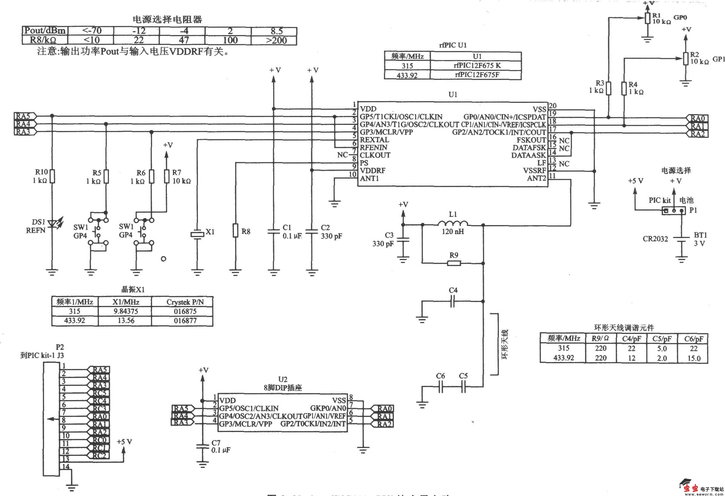 rfPICl2F675F的应用电路 rfPICl2F675F应用电路元器件