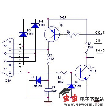 凭着自己玩电络铁也有N年之久了,怎么说也不能放弃。再次上网查MAX232的内部电路,终于明白它的工作原理,于是用两个三极管代MAX232,完成了数据线的制作。制作成本比用MAX232还低....