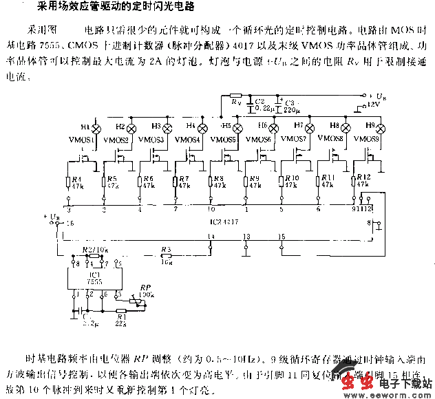 利用场效应管驱动的定时闪光电路