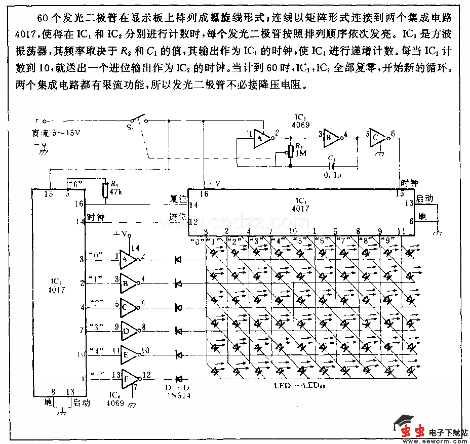 60个发光二极管组成的催限螺旋电路