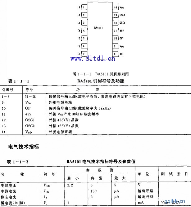 BA5101是红外线遥控编码集成电路,适用于电风扇等家用电器。配套使用型号为BA5201。