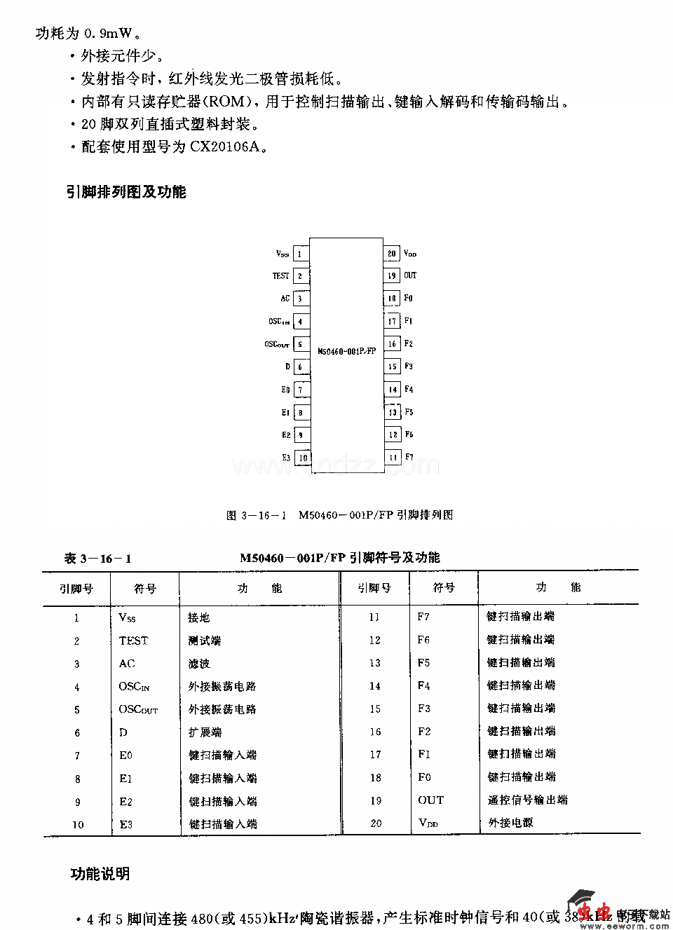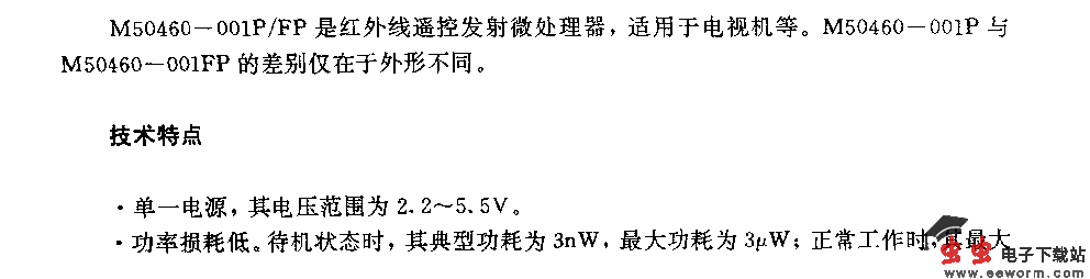 M50460—001P/FP (电视机)红外线遥控发射微处理器