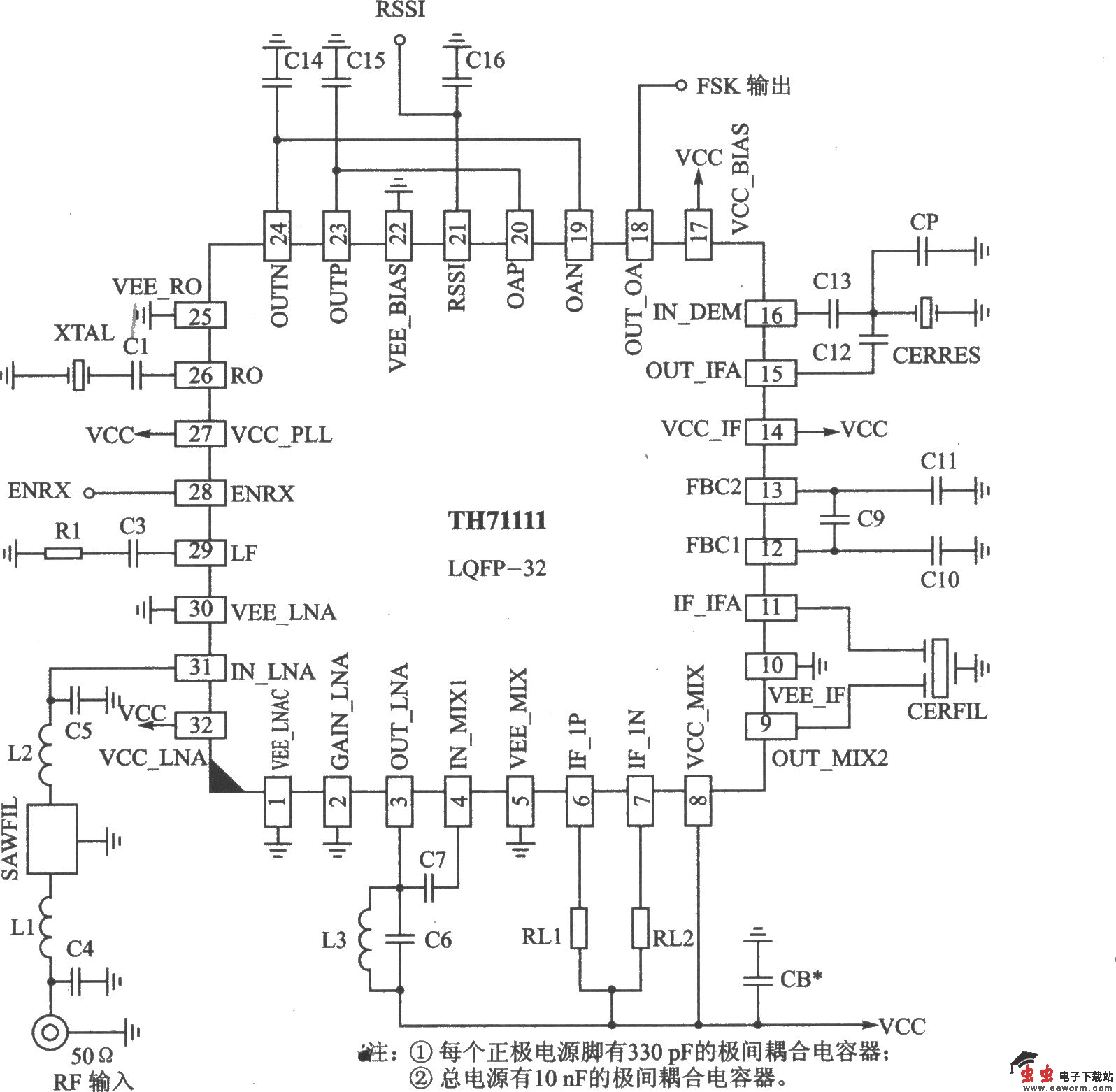 TH71111 FSK接收器电路 TH71111 FSK接收器电路元器件参数