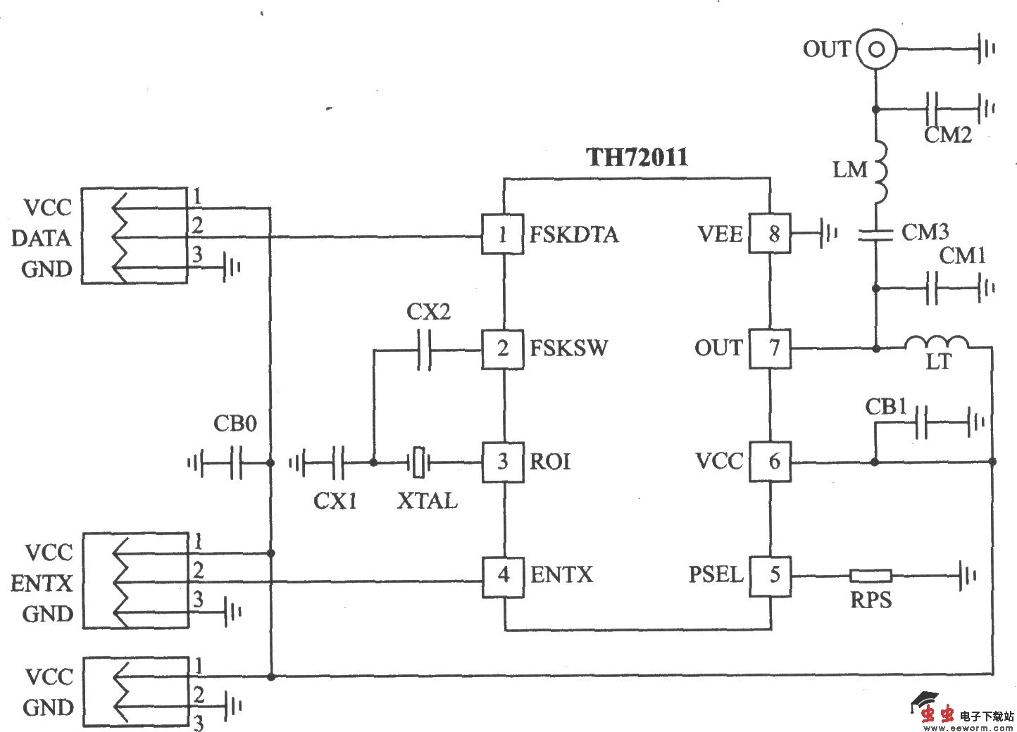 TH71072是一款符合EN 300 220及类似标准的单片发射器芯片,可用于无钥匙进入系统、遥控/遥测系统、数据通信系统和安防等系统中。 主要技术特点如下: ·完全集成且稳定的PLL; ·工作频率为380~450 MHz; ·单端RF输出; ·FSK调制方式; ·FSK通过晶振牵引进行调制,FSK调制速率为DC~40 Kb/s; ·电源电压1.9~5.5 V; ·工作电流为3.5~10.7 mA,待机电流为0.1μA; ·输出功率为-l2~ 8.5 dBm。