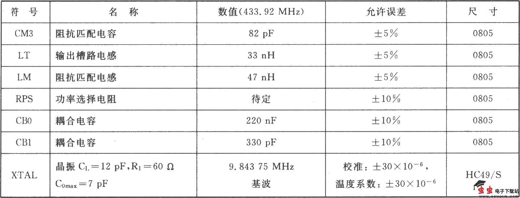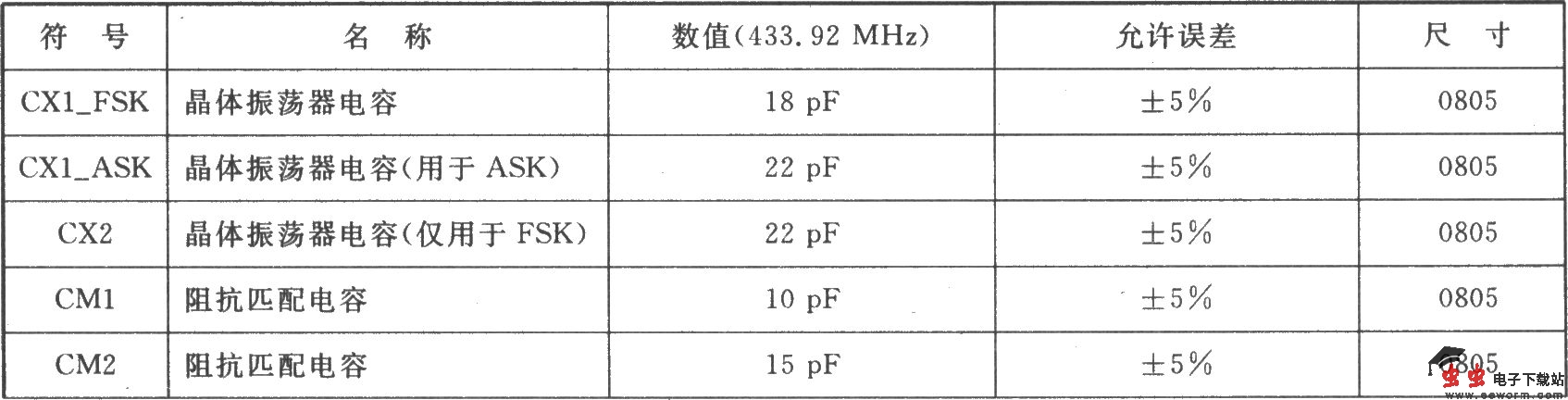 H72015是为315 MHz ISM频段的应用而设计的FSK/ASK发射器。其符合EN 300 220及类似标准,可应用于无钥匙进入系统、遥控/遥测系统、数据通信系统和安防等系统中。 主要技术特点如下: ·完全集成且稳定的PLL; ·工作频率为290~350 MHz; ·单端RF输出; ·FSK调制通过晶振牵引使调制速率从DC~40 Kb/s; ·AS调制通过内部功率放大器的导通/关闭键控法来实现,ASK调制速率达40 Kb/s; ·电源电压为l.9~5.5 V; ·有低电压检测器; ·工作电流为3.5~10.7 mA可调,待机电流为0.1μA; ·输出功率为-12~ 8.5 dBm可调。