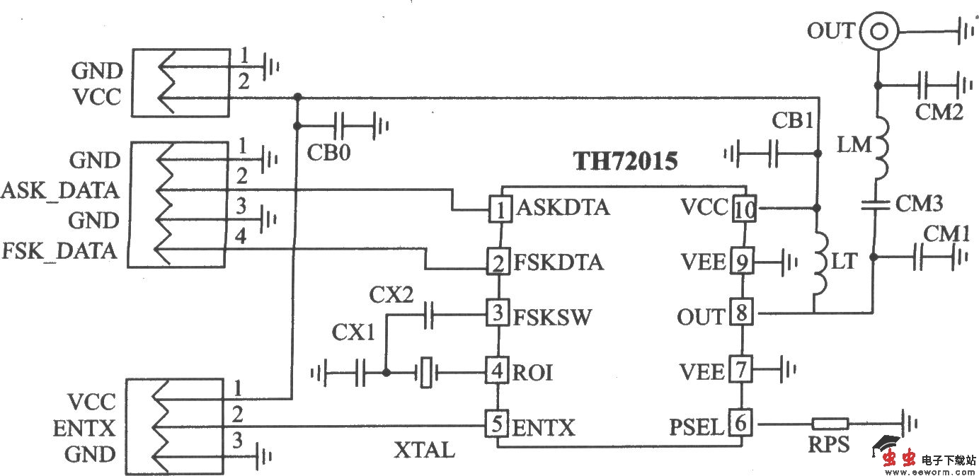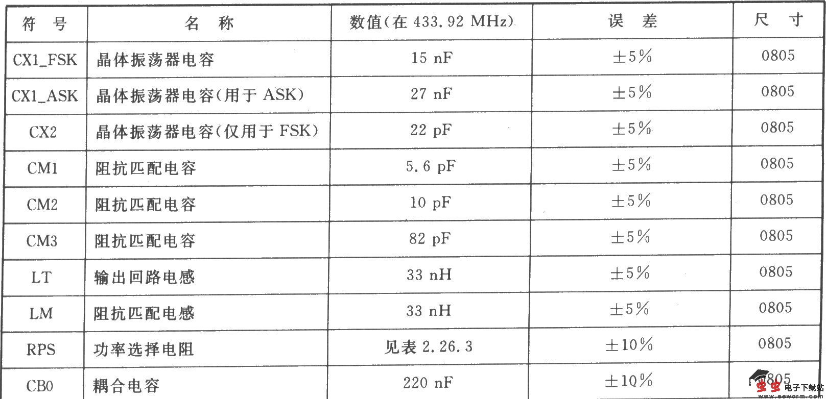 TH72015是专为欧洲433 MHz ISM频段的应用而设计的FSK/ASK发射器,符合EN 300 220无线电通信标准,可用于无钥匙进入系统、遥控/遥测系统、数据通信系统和安防等系统中。 主要技术特点如下: ·工作频率为380~450 MHz; ·单端RF输出; ·FSK调制速率为DC~40 Kb/s; ·ASK调制速率达40 Kb/s; ·电源电压为l.9~5.5 V; ·工作电流为3.5~10.7 mA,待机电流为0.1μA; ·输出功率为-12~ 8.5 dBm。