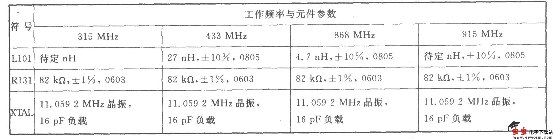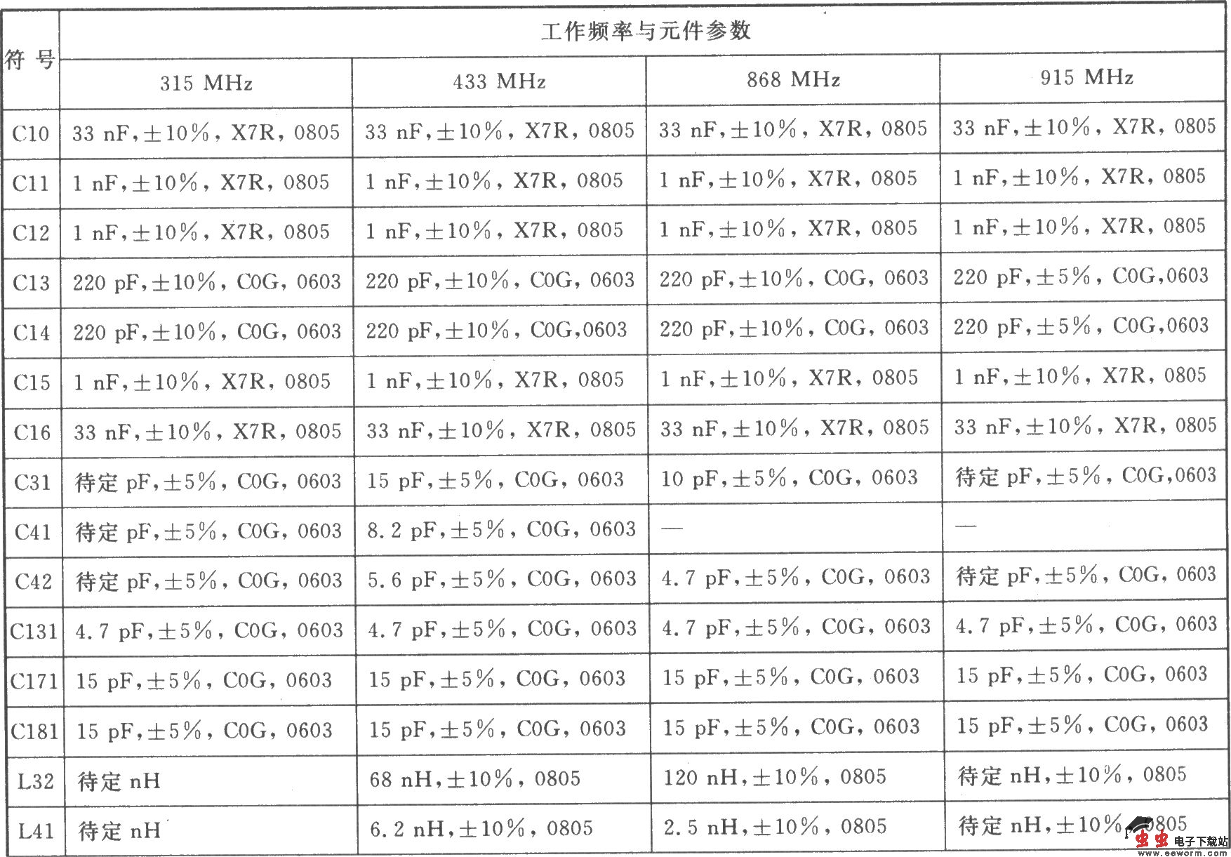 CCl000的典型应用电路 在不同工作频率下CCl000应用电路的元器件参数值