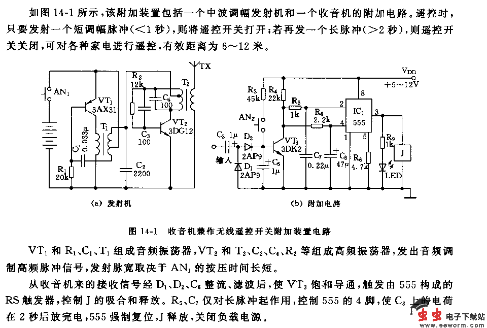 收音机兼作无线遥控开关附加装置电路