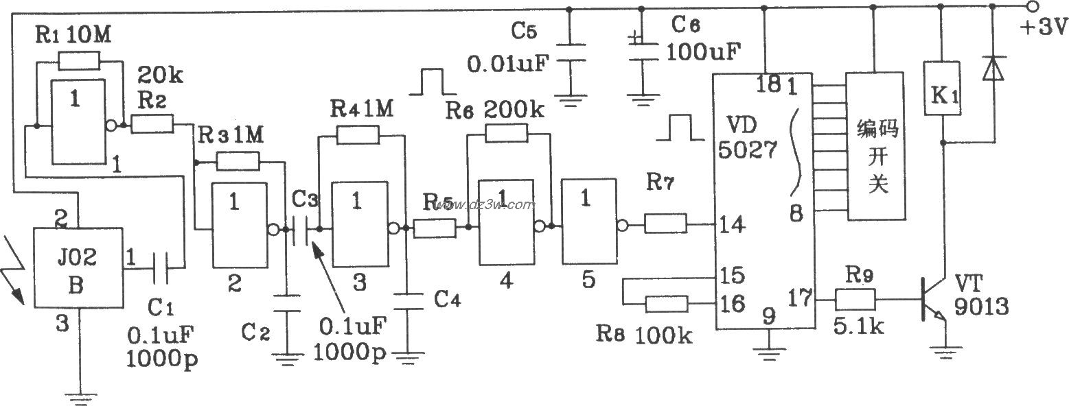 J02B构成的遥控解码接收电路: