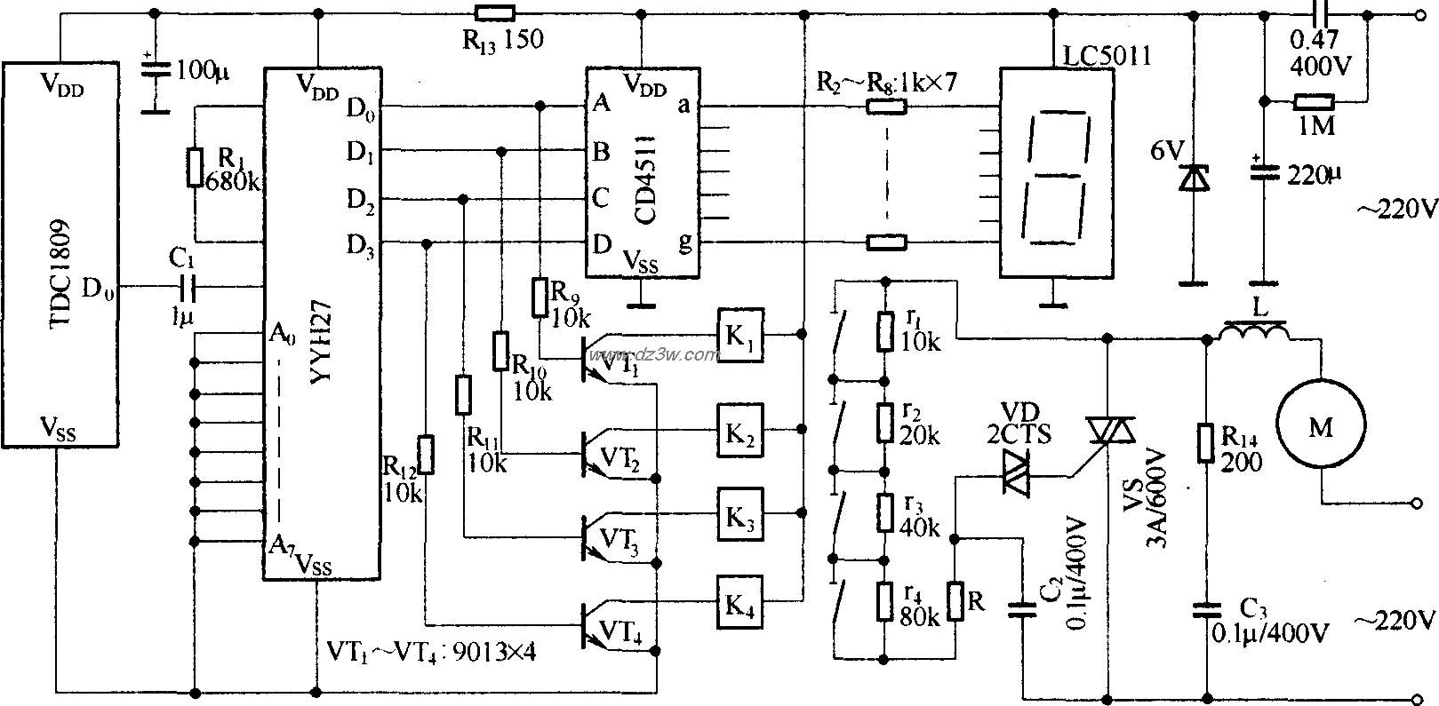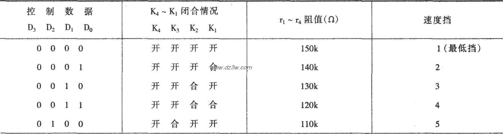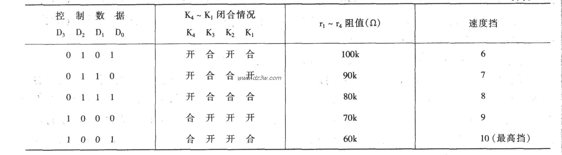 无线发射电路原理: 无线接收调速电路: r1-r4与控制数据及速度挡的关系见下表