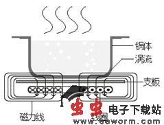 电磁灶是一种利用电磁感应原理将电能转换为热能的厨房电器。在电磁灶内部,由整流电路将50/60Hz的交流电压变成直流电压,再经过控制电路将直流电压转换成频率为20-40KHz的高频电压,高速变化的电流流过线圈会产生高速变化的磁场,当磁场内的磁力线通过金属器皿(导磁又导电材料)底部金属体内产生无数的小涡流,使器皿本身自行高速发热,然后再加热器皿内的东西。