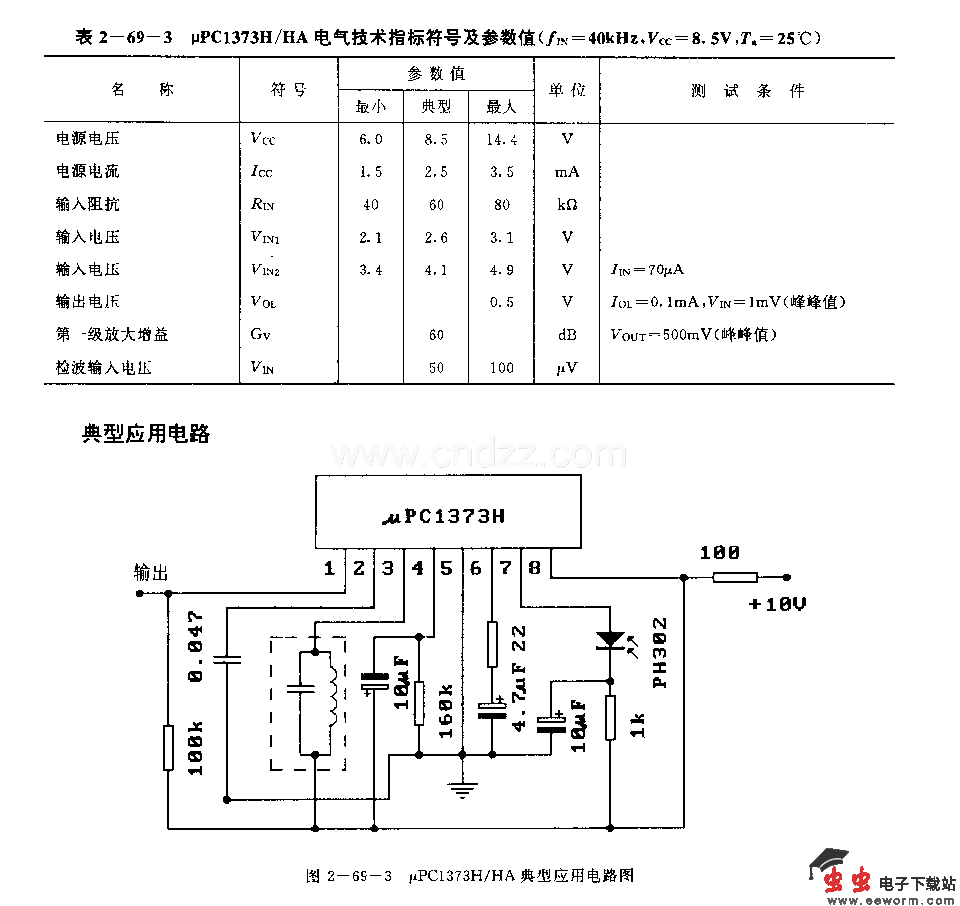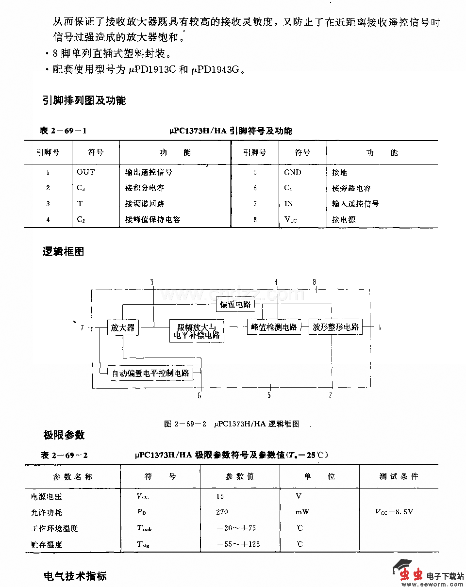UPCI373H/HA (电视机和录像机)红外线遥控接收前置放大电路