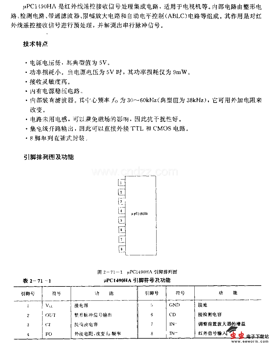 UPCI490HA (电视机)红外线遥控接收信号处理电路