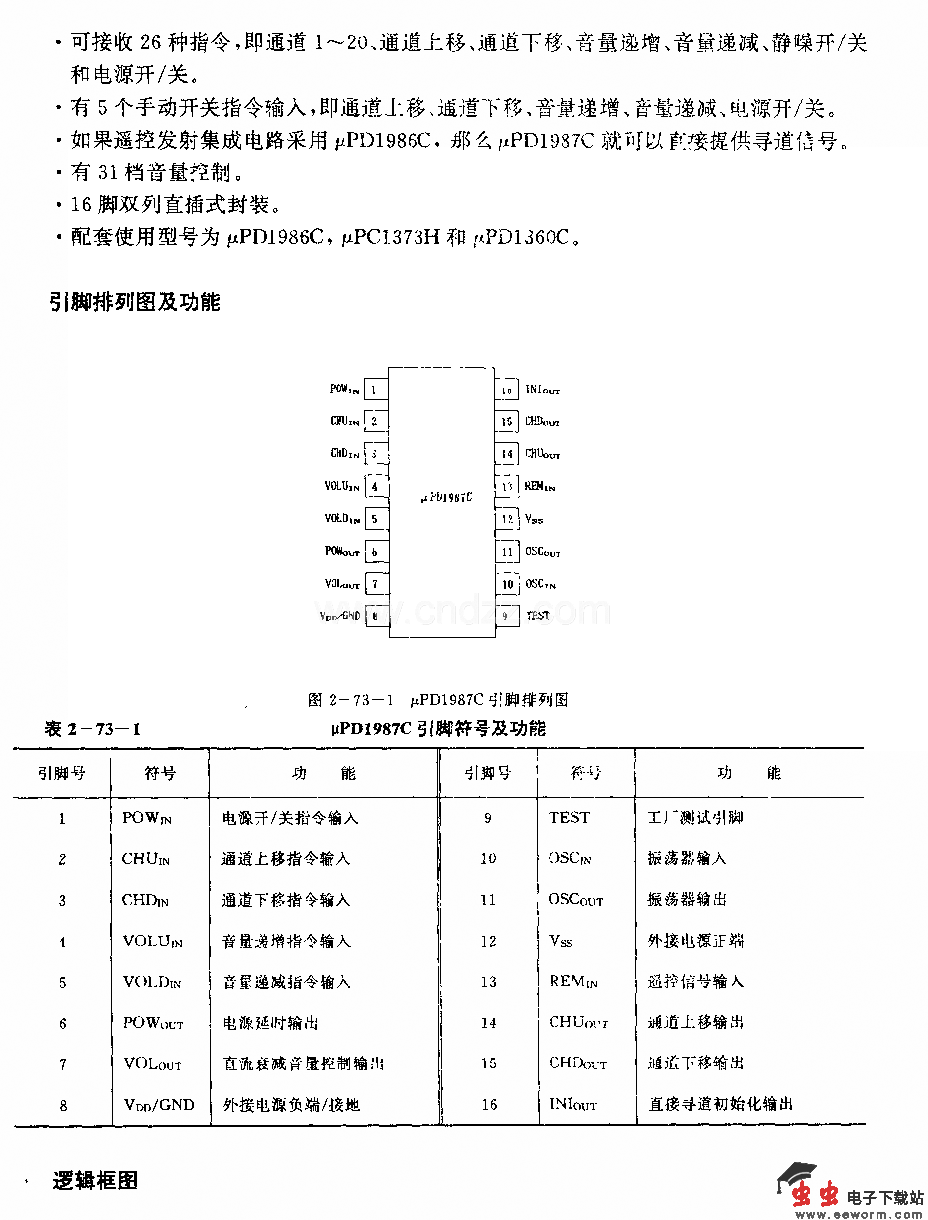 uPDl987C (电视机)红外线遥控接收电路
