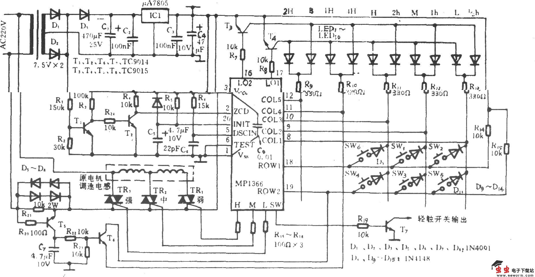电风扇电脑程控电路(MP1366)