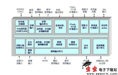 数字电视机顶盒的功能已经从开始的接收码流,解压缩视音频,显示EPG信息,简单的OSD菜单,到现在的增加交互功能,宽带网视音频应用,外围的数据接口也增加了高速USB,以太网的接口,eSATA接口等一些PC常用的接口。这些接口的增加使得机顶盒的应用范围得到有效的扩展,现在也可以用意法半导体(ST)的高性能机顶盒芯片STi7105来实现家庭媒体中心的应用。所以高清机顶盒的应用开发已经不再是单一的功能的开发,而是如何利用高性能的机顶盒芯片来开发多功能的应用,最大可能利用芯片处理能力,这对机顶盒产品的开发是一个挑战。