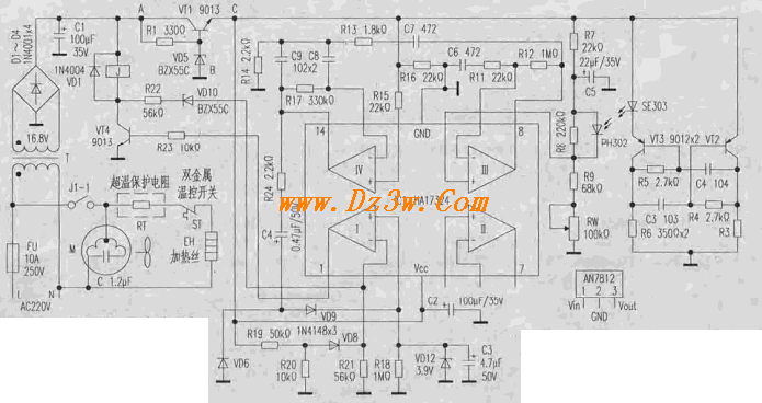 这样就能输出稳定的+ l ZV 直流电供给控制电路,原理比较简单,这里就不作详细介绍了。