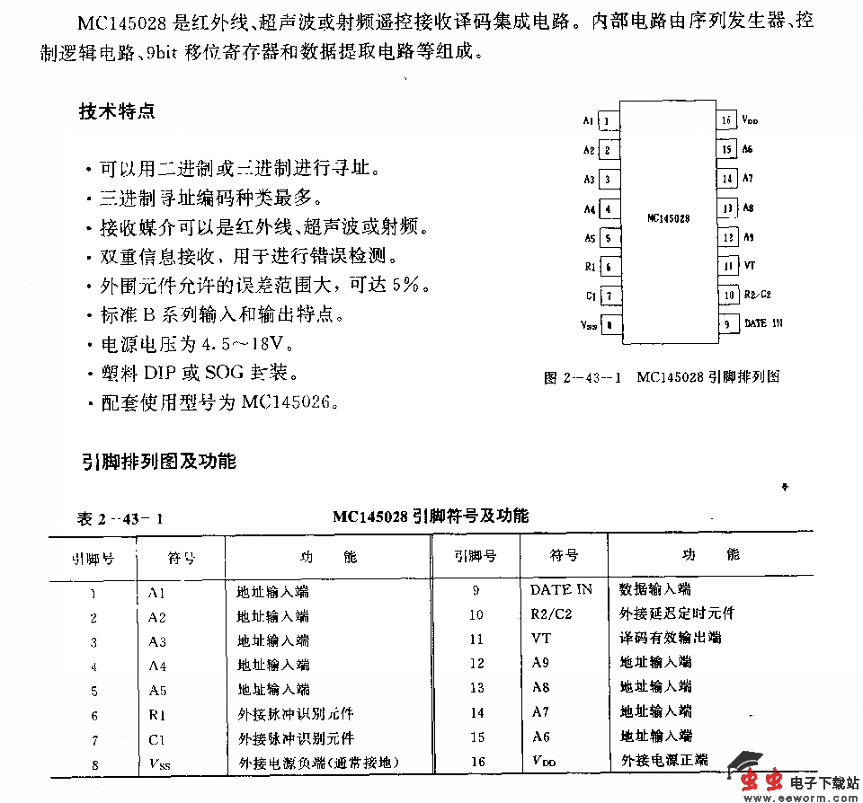 MCl45028 (通用)红外线、起声波或射频遥控接收译码电路