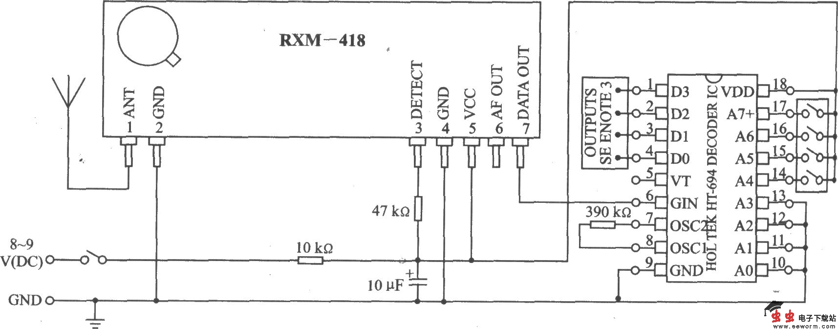 RXM-433/418-RM系列基本的遥控电路