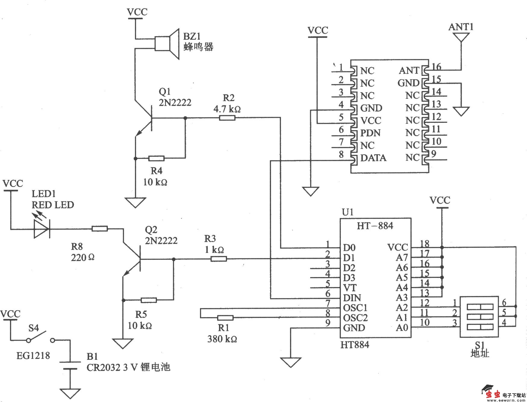 RXM-433/418/315-LC-S系列模块的基本遥控电路