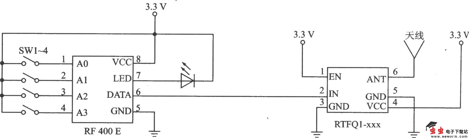 FM-RTFQl-xxx是高效率FM发射器。该系列产品有FM-RTFQl-315 MHz、FM-RTFQ1-433 MHz和FM-RTFQl-868 MHz三个型号,与之配套的接收器是FM-RRFQ1-315 MHz、FM-RRFQl-433 MHz和FM-RRFQl-868 MHz。它们适合在无线安防系统、汽车报警和遥控/遥测等中应用。 主要技术特点如下: ·工作频率为315/433/868 MHz; ·发射距离可达250 m; ·数据传输速率为9.67 Kb/s, ·电源电压为2.1~4.0 V; ·最大工作电源电流为8 mA,最大待机电流为l00 nA; ·最大输出功率为 5 dBm(50Ω负载,VCC=3.3 V); ·工作温度范围为-20~ 85℃。