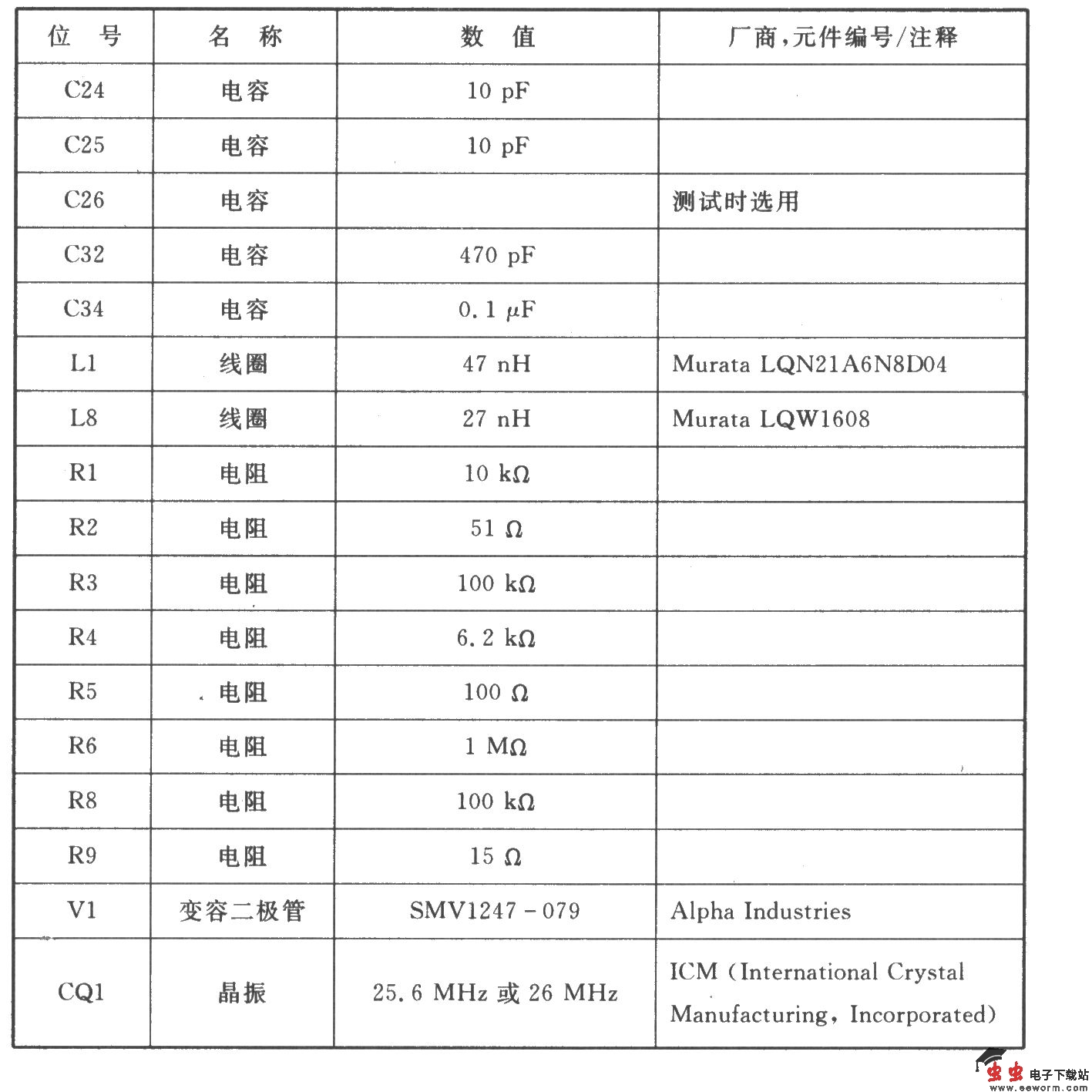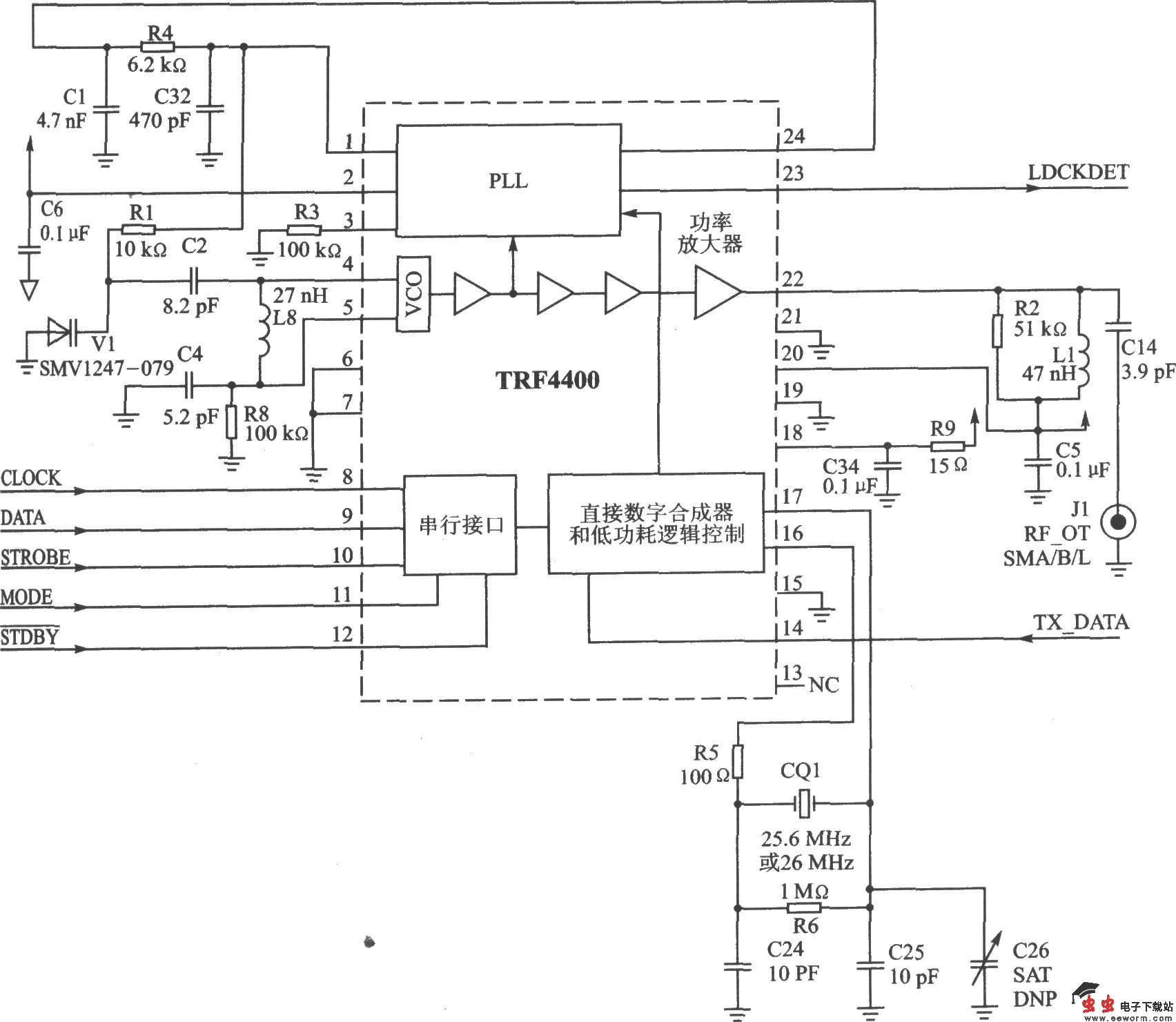 TRF4400在433 MHz ISM频段的应用电路元器件参数