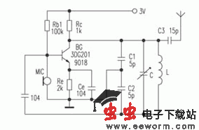 在具体制作时,MIC最好不要用软导线引出,而要将其焊牢在电路板上。电感L可在Φ0.3mm圆棒上绕5-7匝脱胎而成,在调好匝距后,用高频蜡固定。在判断电路是否起振时,可用以下简法。用普通指针万用表AC2V挡,任一表笔悬空,另一表笔接触天线,若发现指针有摆动,说明电路已起振,即可做拉距调试。