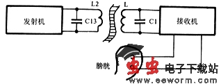 电子膀胱刺激器实际上是一个无线电能量传送器。它的发射机要求是:①有足够的工作距离(大于2.5cm);②有足够的功率输出。由于受到重量、体积的限制,又由于接收机是一个无源网络,因此这种刺激器与一般无线电发射机和接收机的要求不同而有其一定的特殊性。