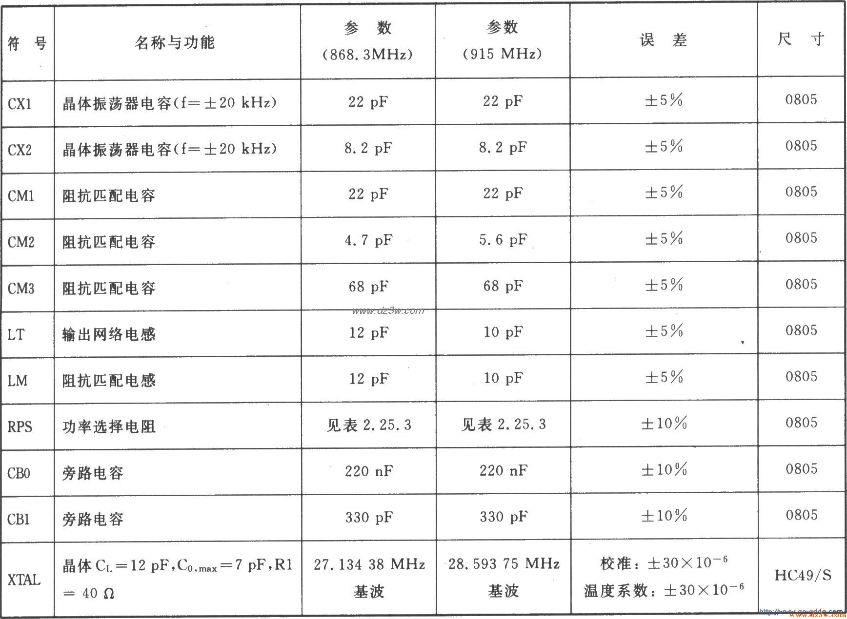 主要技术特点如下: ·工作在850~930 MHz频段; ·FSK调制方式; ·FSK数据速率为40 Kb/s; ·单端RF输出; ·输出功率为-l2~ 8.5 dBm可调; ·电源电压为1.9~5.5 V; ·工作电流为4~14 mA可调,待机模式最大电流为l00 nA; ·功率消耗为0.12 W; ·工作温度为-40~85℃。
